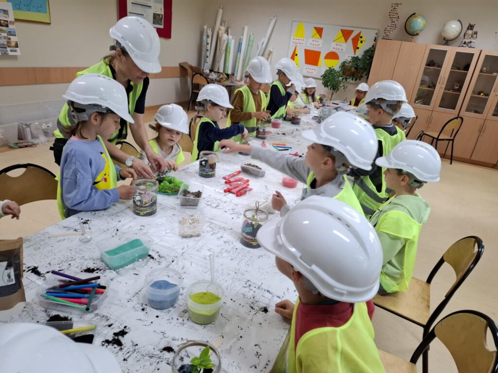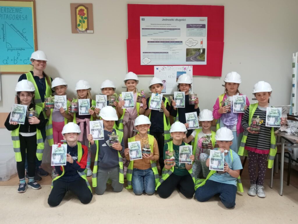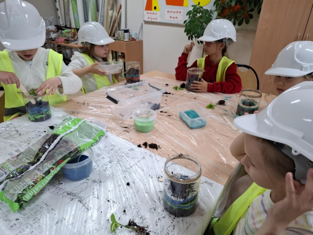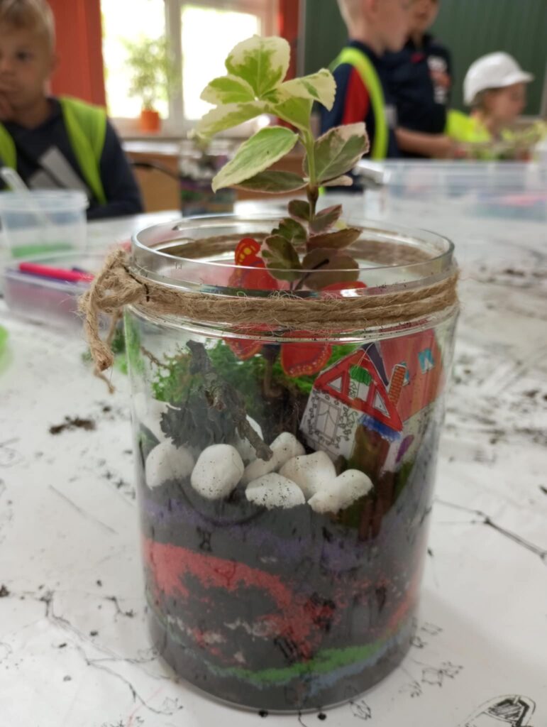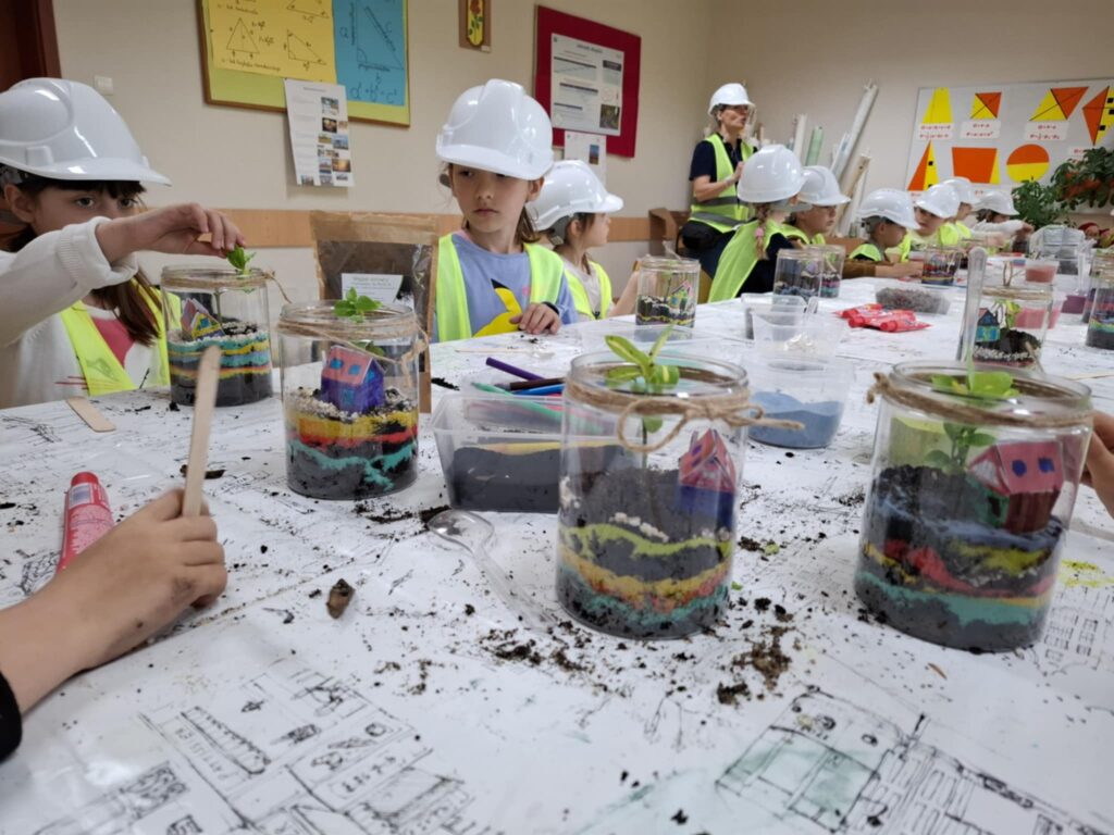 Mali projektanci zaprojektowali i zbudowali przestrzenną kompozycję: bajkowy mini ogród z własnoręcznie zaprojektowanym i złożonym domkiem oraz żywą roślinką, którą będą mogły się opiekować w domu, a w przyszłości przesadzić do swojego ogrodu.