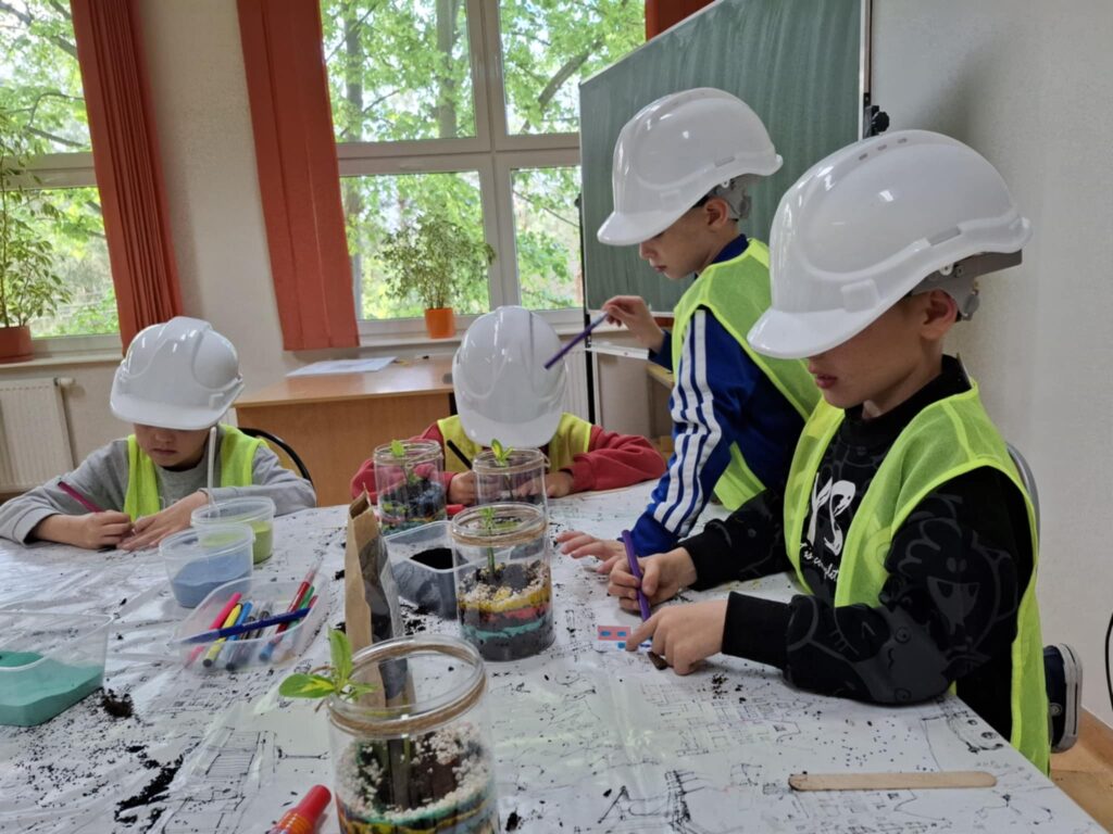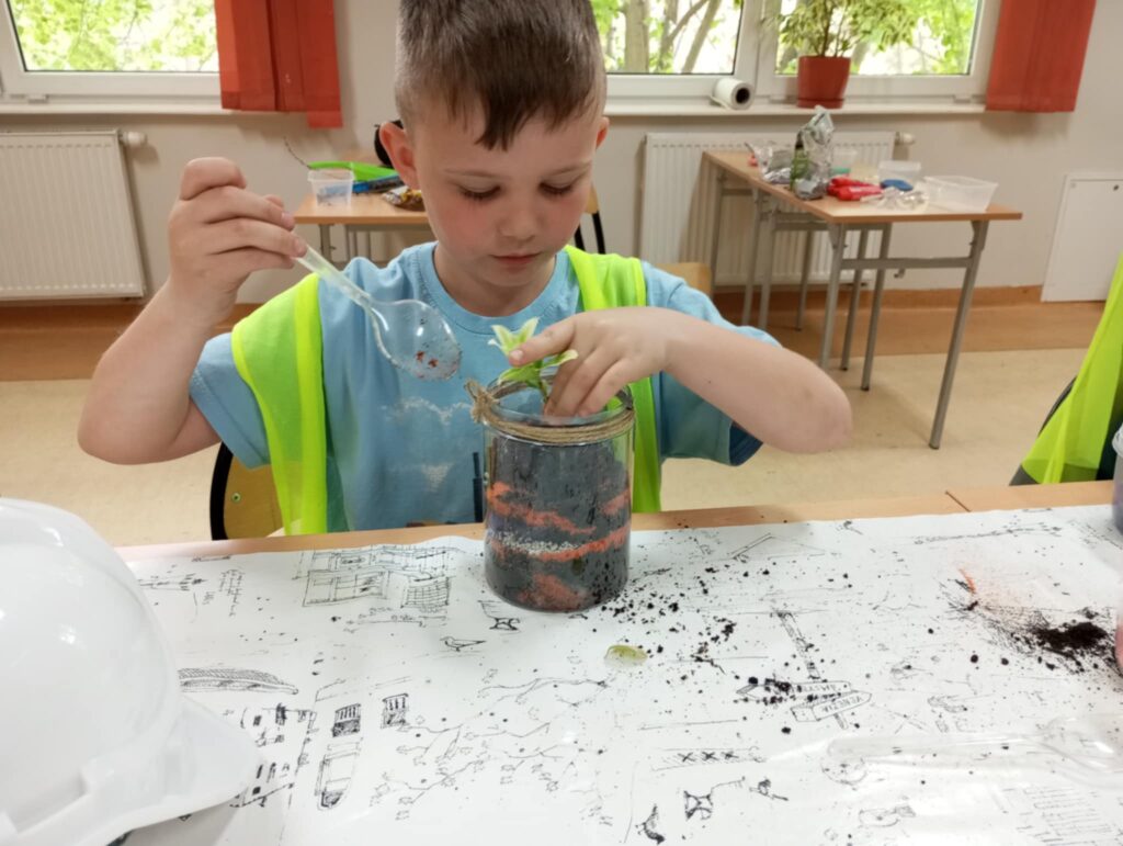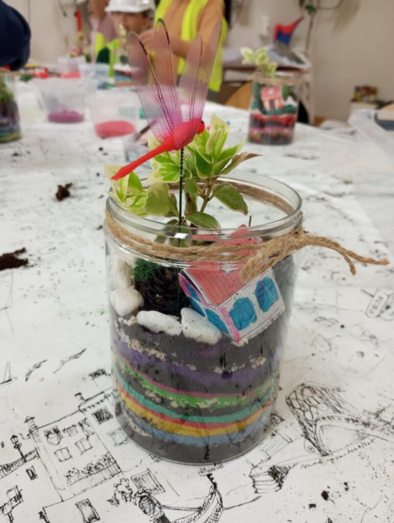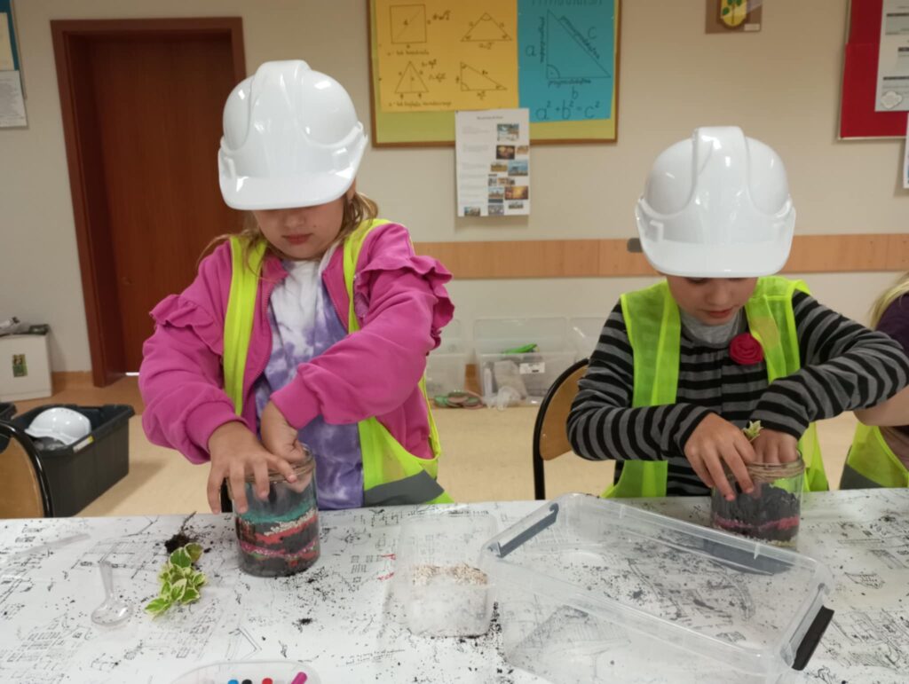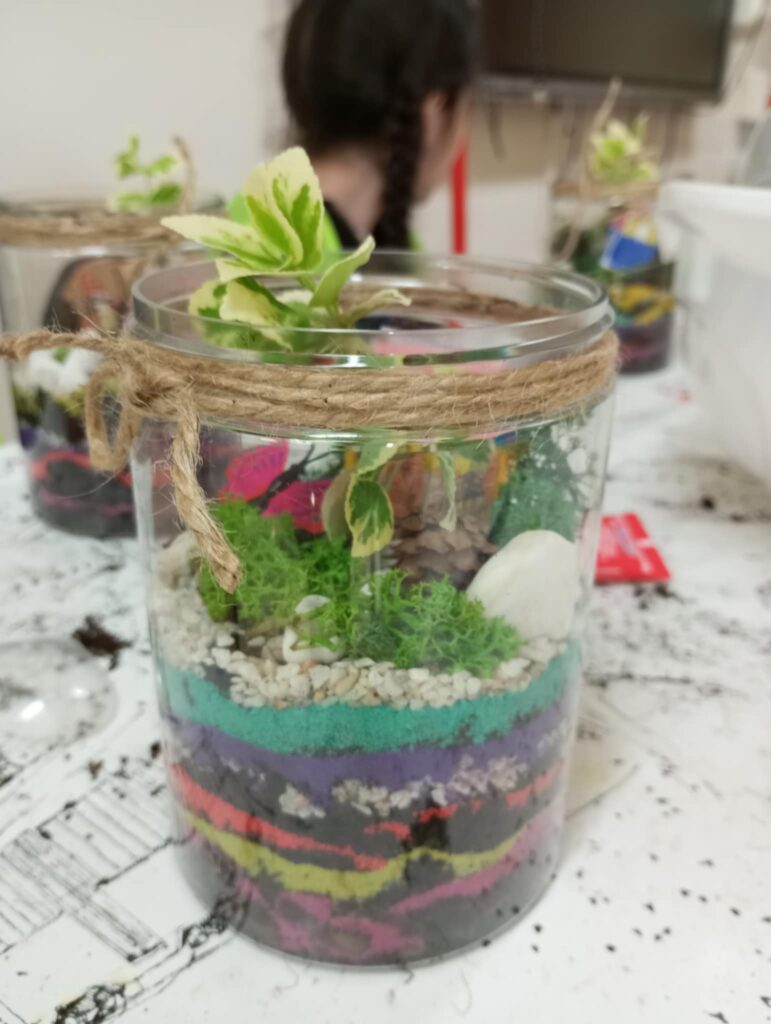 Mali projektanci zaprojektowali i zbudowali przestrzenną kompozycję: bajkowy mini ogród z własnoręcznie zaprojektowanym i złożonym domkiem oraz żywą roślinką, którą będą mogły się opiekować w domu, a w przyszłości przesadzić do swojego ogrodu.