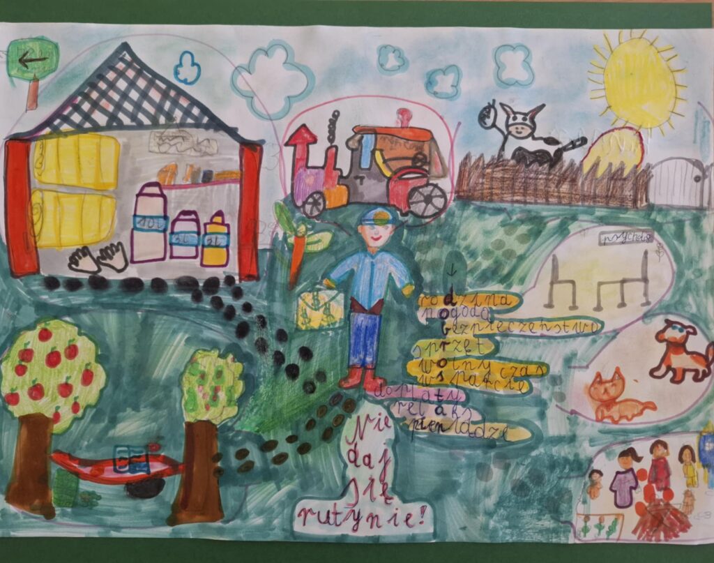 Zadaniem konkursowym było wykonanie dwuwymiarowej pracy plastycznej w formacie A-3, w dowolnej technice, obrazującej zasady bezpiecznej pracy w gospodarstwie oraz zalecenia dotyczące dbania o zdrowie psychiczne i fizyczne człowieka, zawarte w treści kampanii prewencyjnej „Dobrostan Rolnika”.