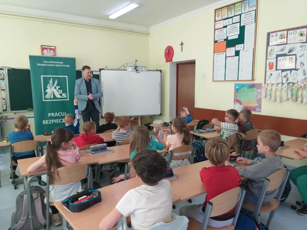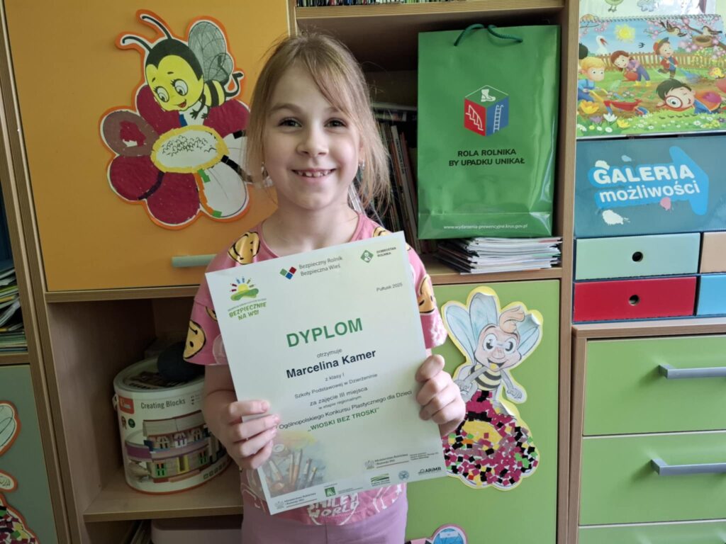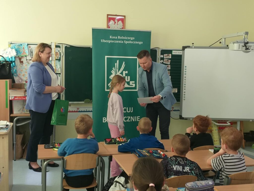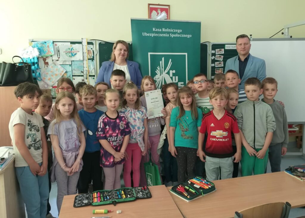 21 maja 2025r. naszą szkołę odwiedzili przemili Goście – przedstawiciele Kasy Rolniczego Ubezpieczenia Społecznego w Pułtusku, którzy wręczyli uczennicy klasy I Marcelinie Kamer dyplom oraz nagrodę za zajęcie III miejsca w regionalnym etapie konkursu.