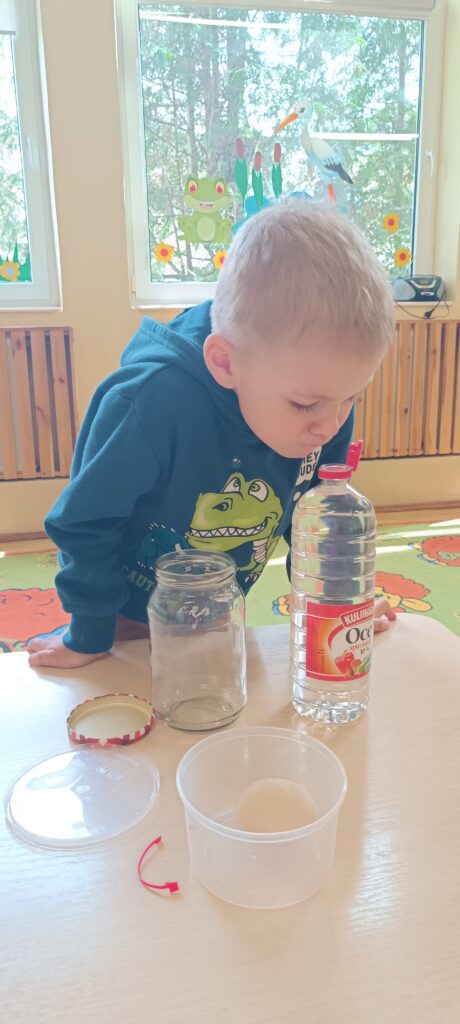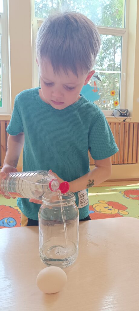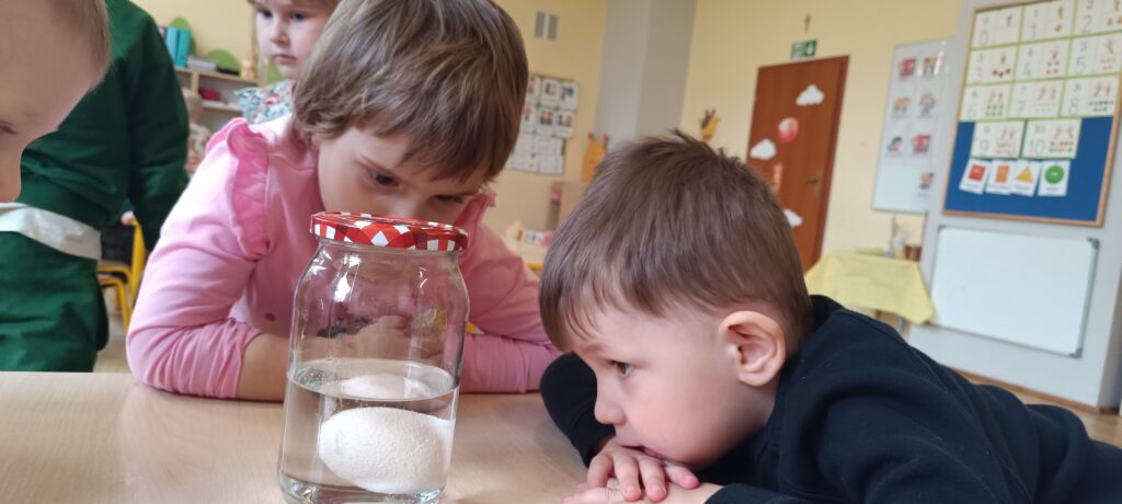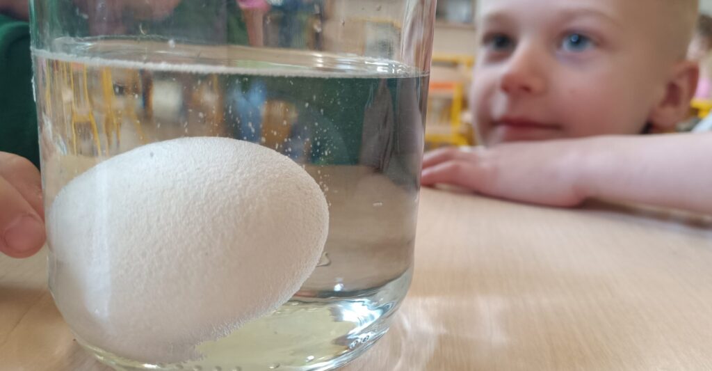 Wielkanoc to wspaniały czas, również na eksperymenty! Tym razem, w ramach zajęć „Warsztaty Szalonego Naukowca”, grupa „Jeżyki” wykonała eksperyment z jajkiem 🥚