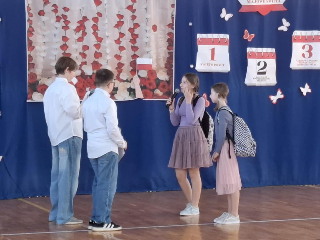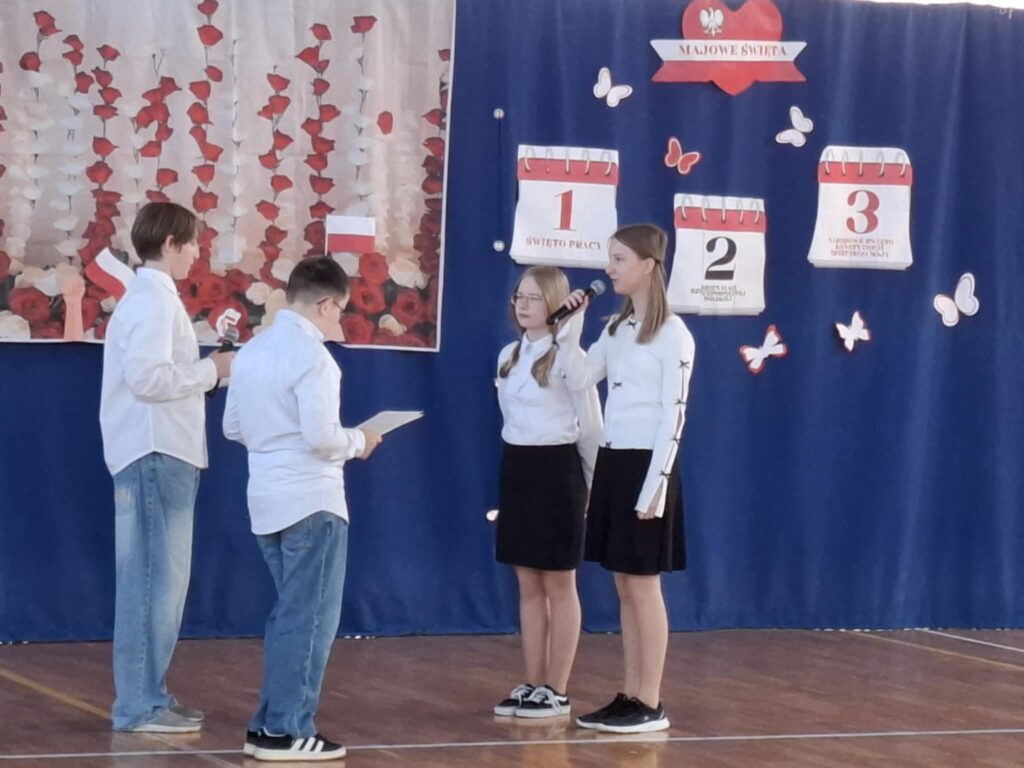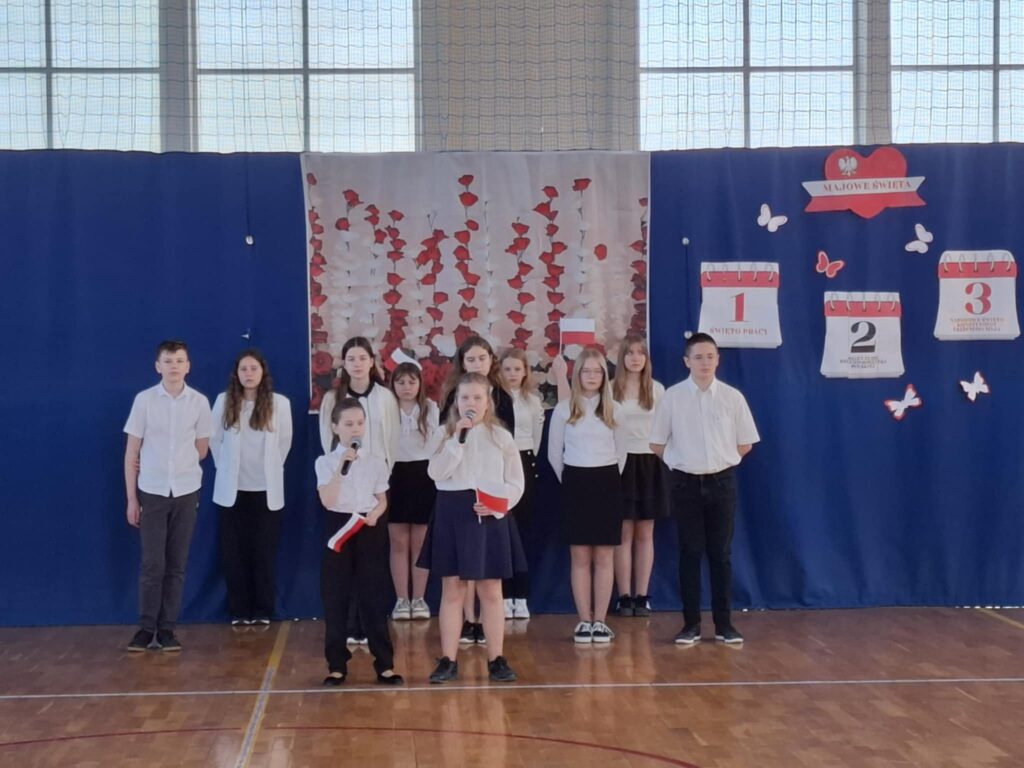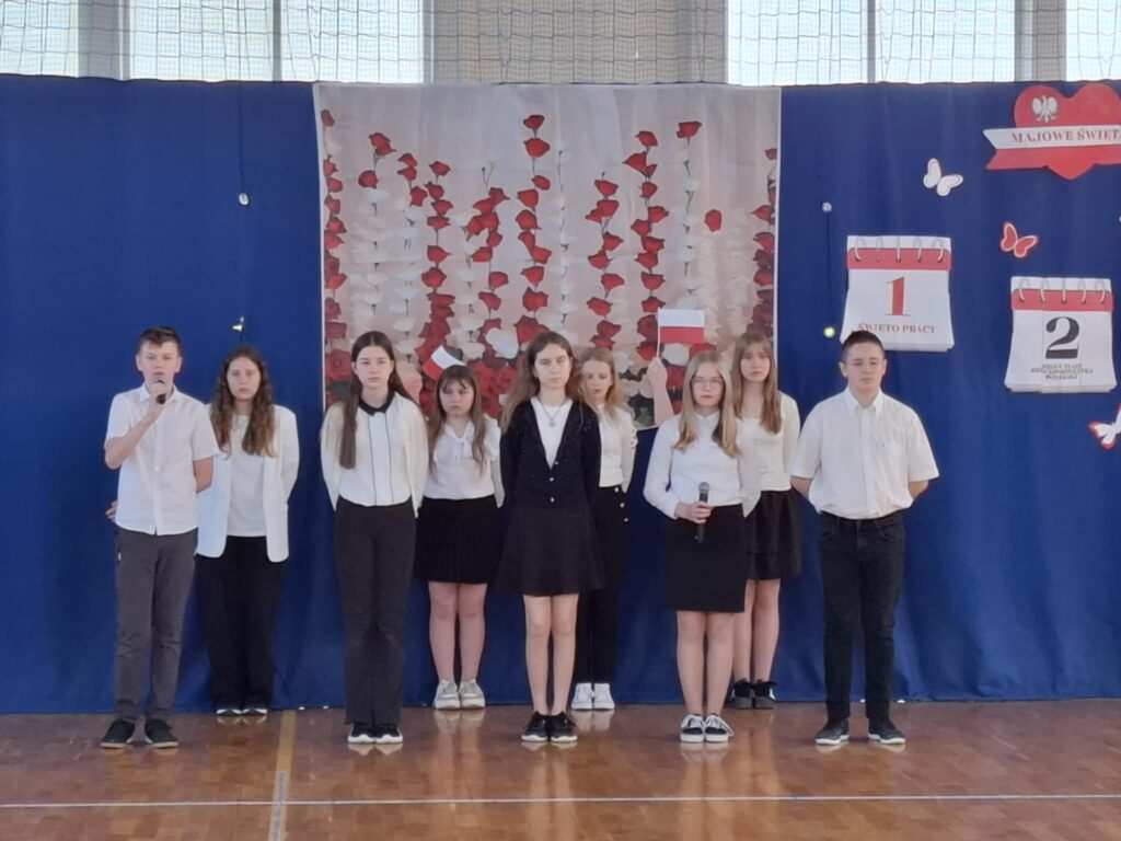 Podczas tego pięknego wydarzenia uczniowie przypomnieli i uhonorowali inne, ważne majowe wydarzenia.