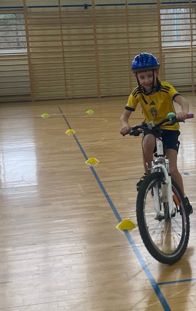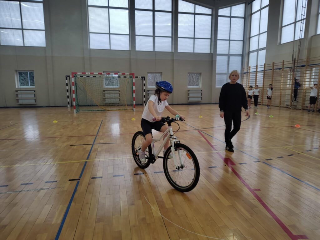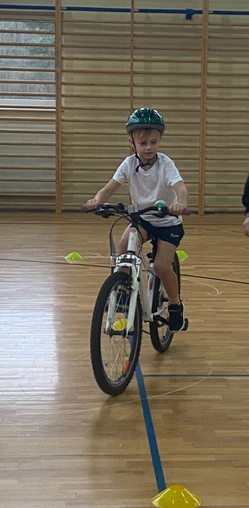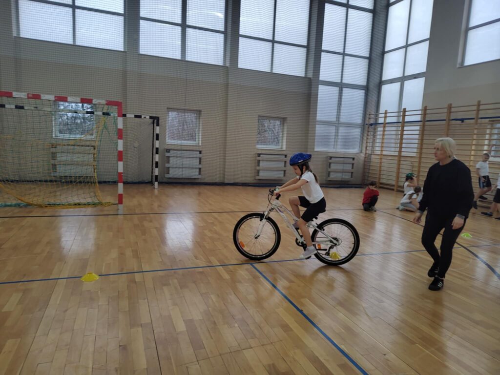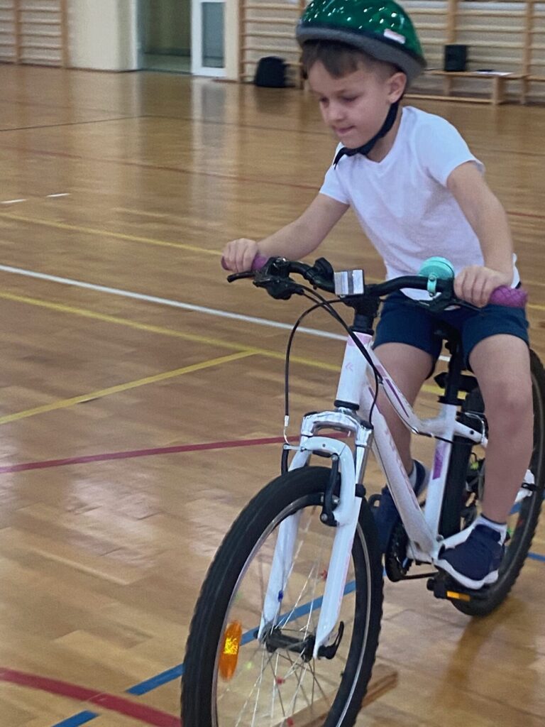 Sprawność Rowerzysta ma na celu rozwijanie umiejętności jazdy na rowerze oraz podstawowych umiejętności z zakresu bezpieczeństwa. Podczas zajęć uczniowie doskonalili umiejętności jazdy, ucząc się ruszania z miejsca, jazdy prosto z przejazdem przez bramkę o szerokości 1 metra oraz zawracania na promieniu 3 metrów. Dodatkowo ćwiczyli min. jazdę slalomem między pięcioma stojakami.