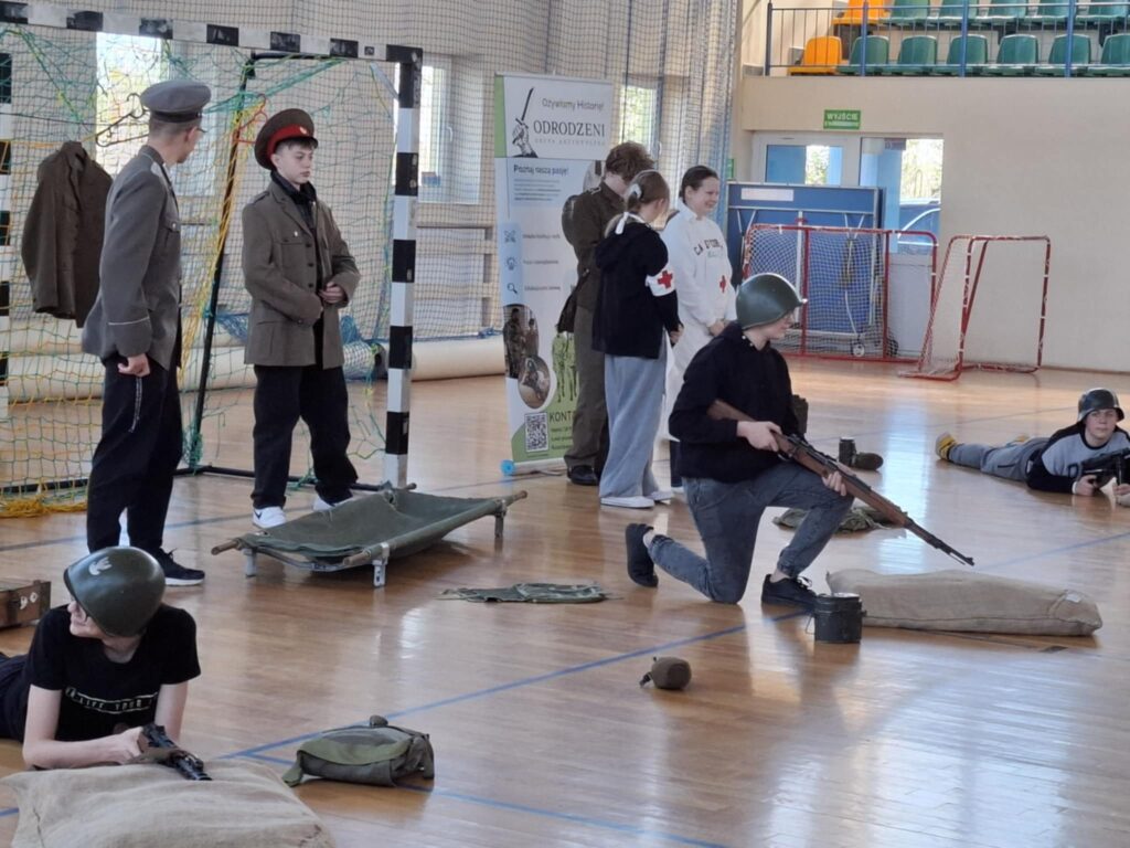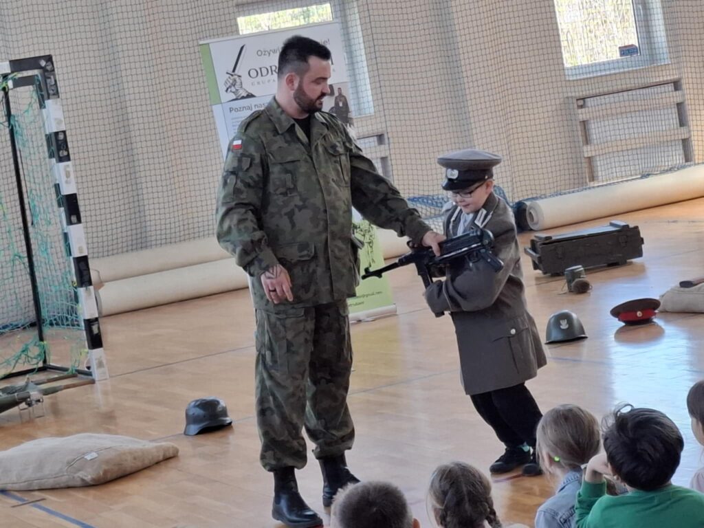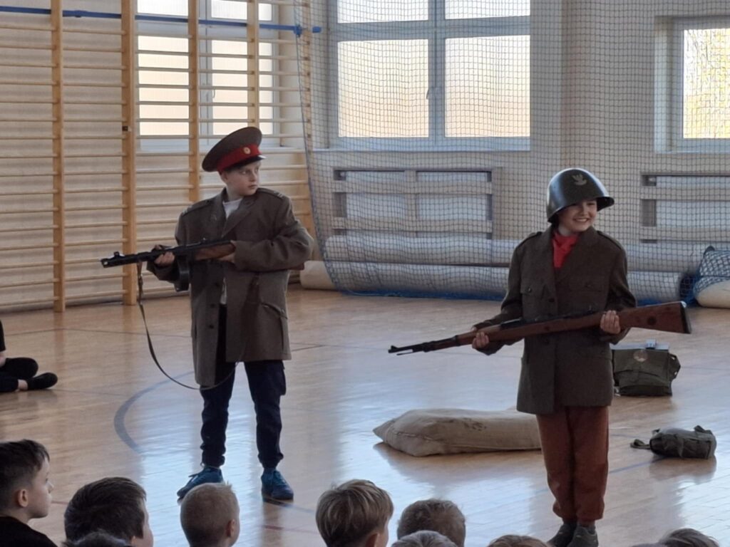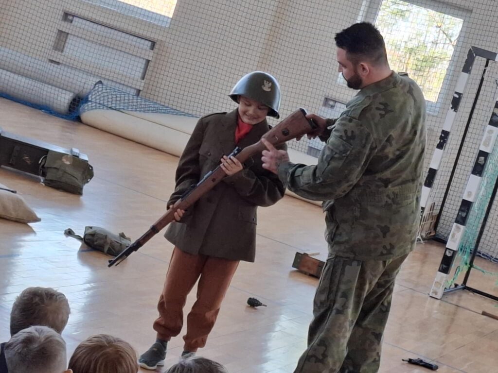 Podczas pokazu  uczniowie mogli: przymierzyć repliki mundurów wojskowych, potrzymać repliki broni używanej w tamtych czasach, wcielić się w rolę żołnierzy i uczestniczyć w scenkach historycznych.