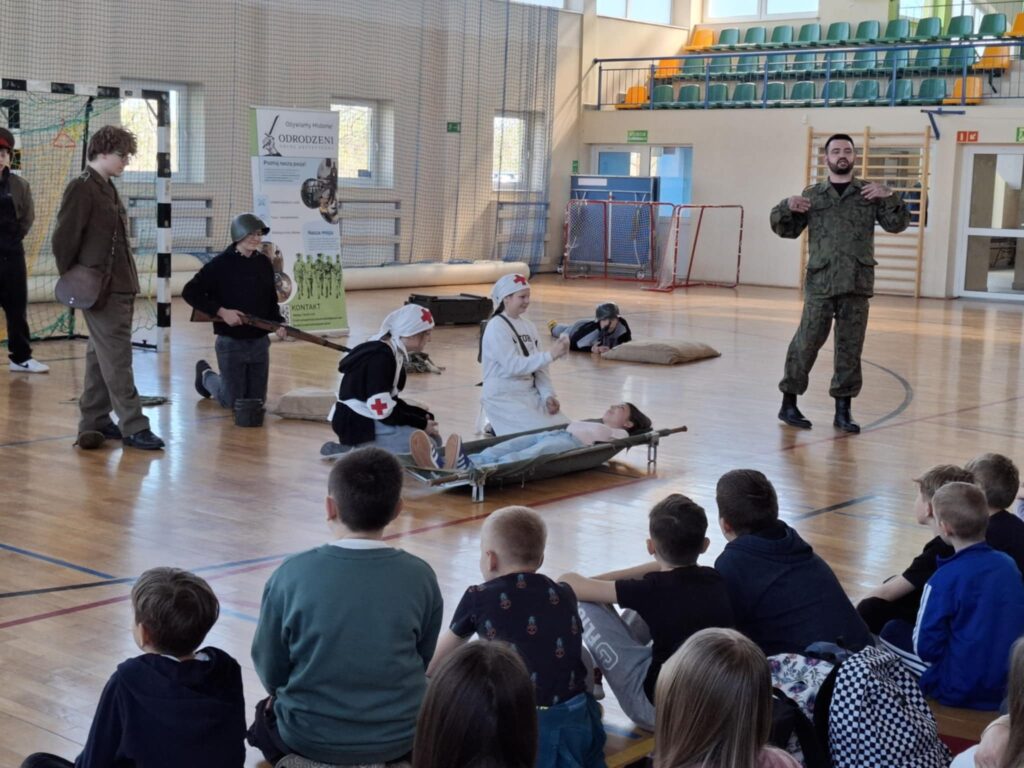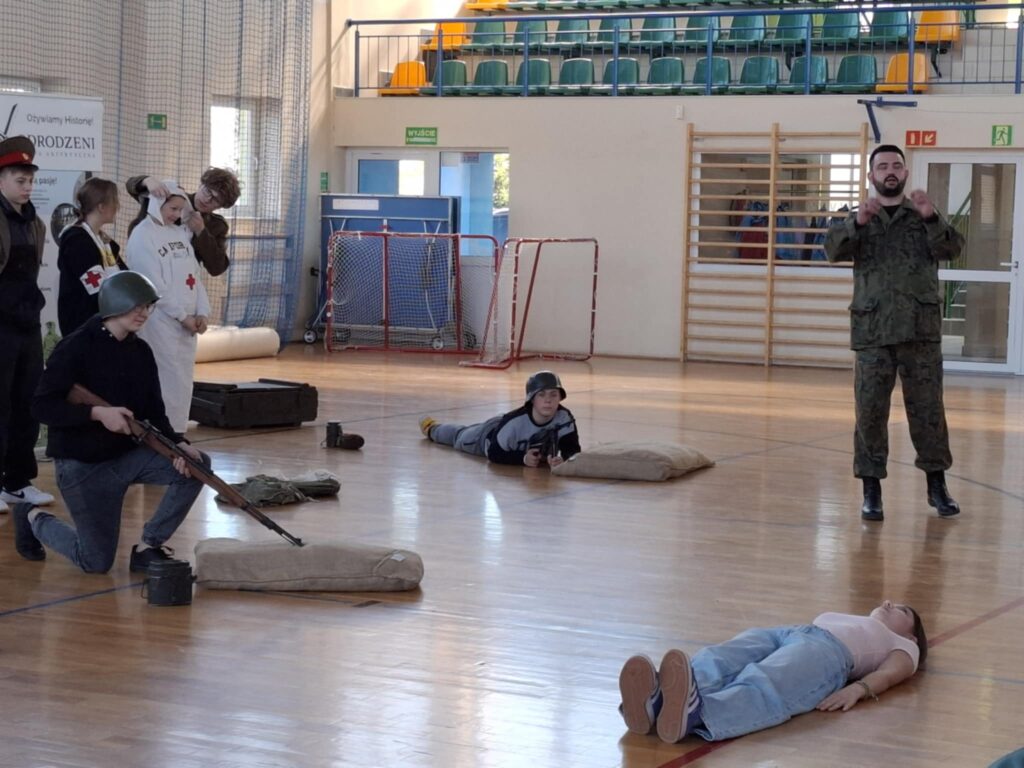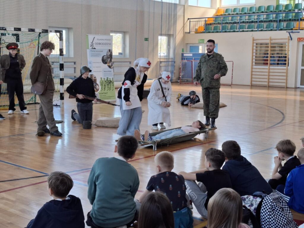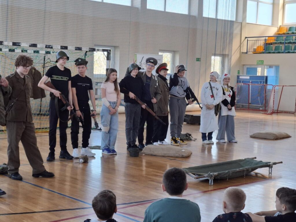 Podczas pokazu  uczniowie mogli: przymierzyć repliki mundurów wojskowych, potrzymać repliki broni używanej w tamtych czasach, wcielić się w rolę żołnierzy i uczestniczyć w scenkach historycznych.