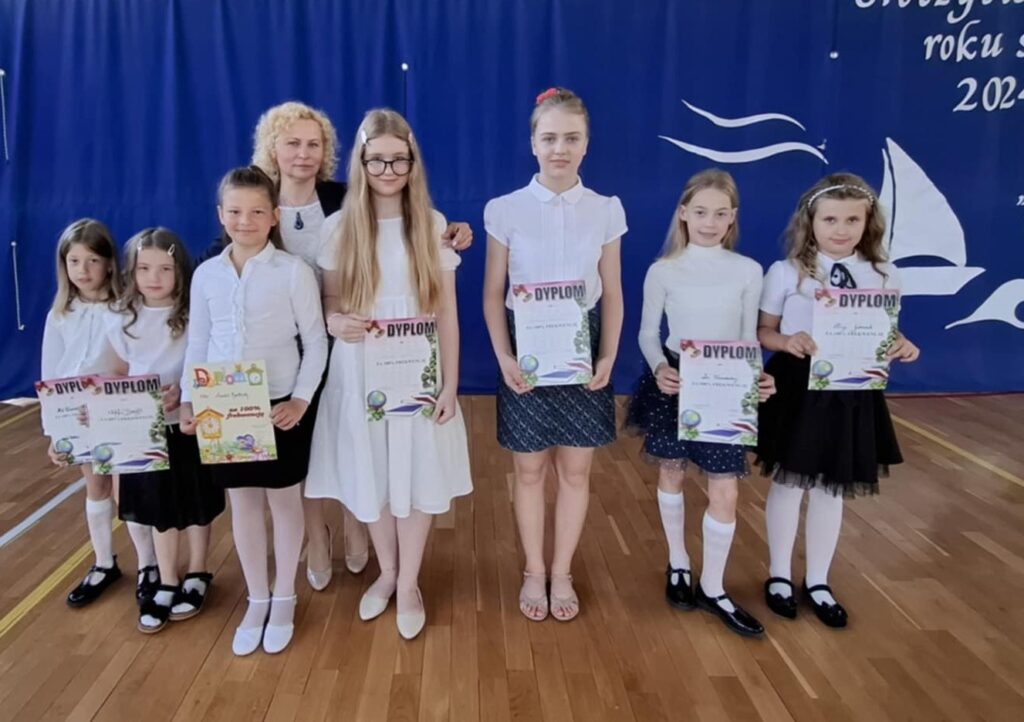 - Najwyższa średnia w szkole wynosi – 5,90 – uzyskała ją uczennica klasy V –Zofia Kamińska oraz 5,85 Milena Wiesiołek, uczennica klasy VII.