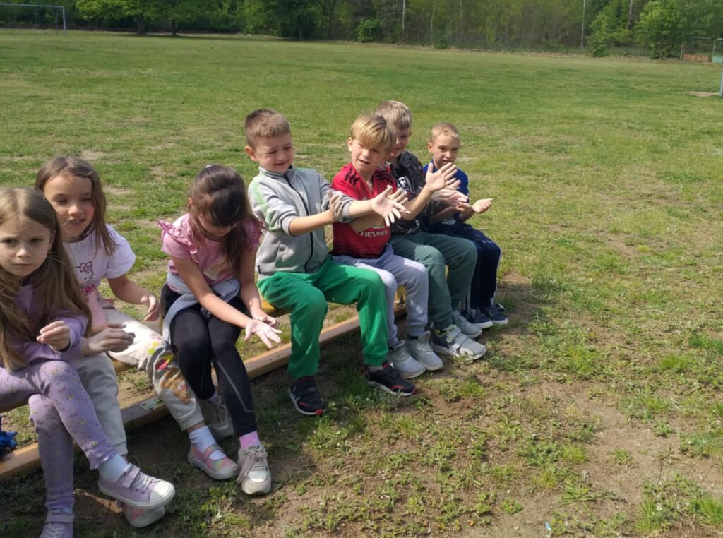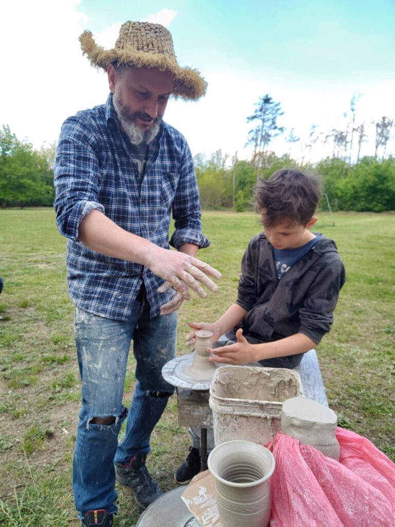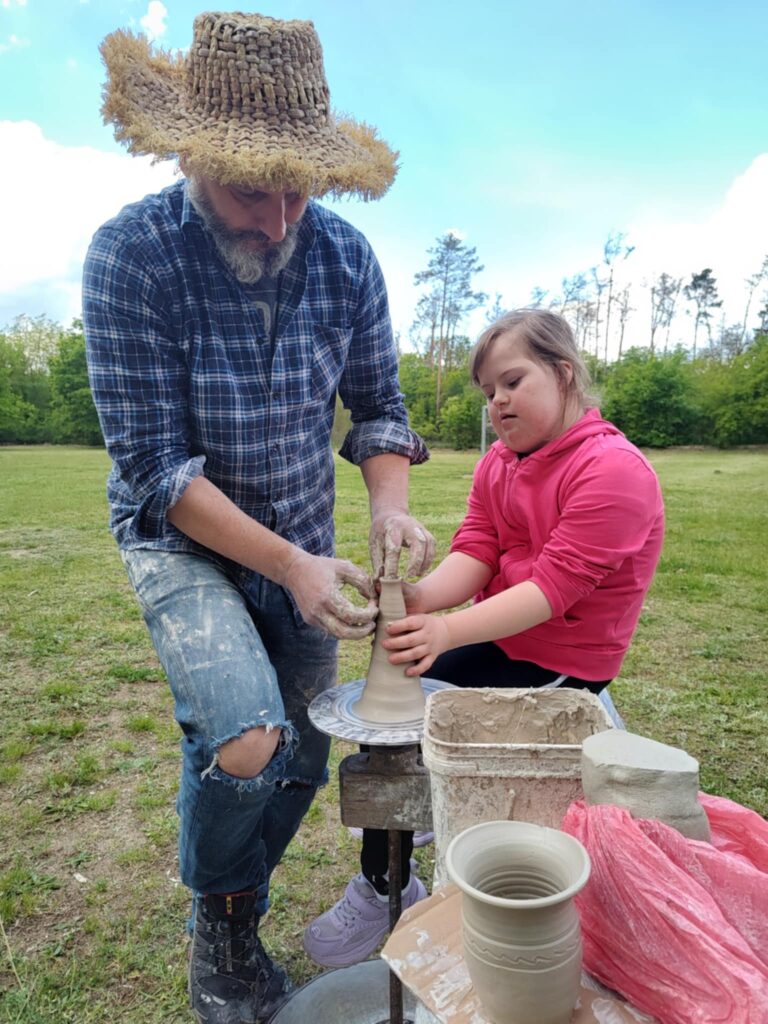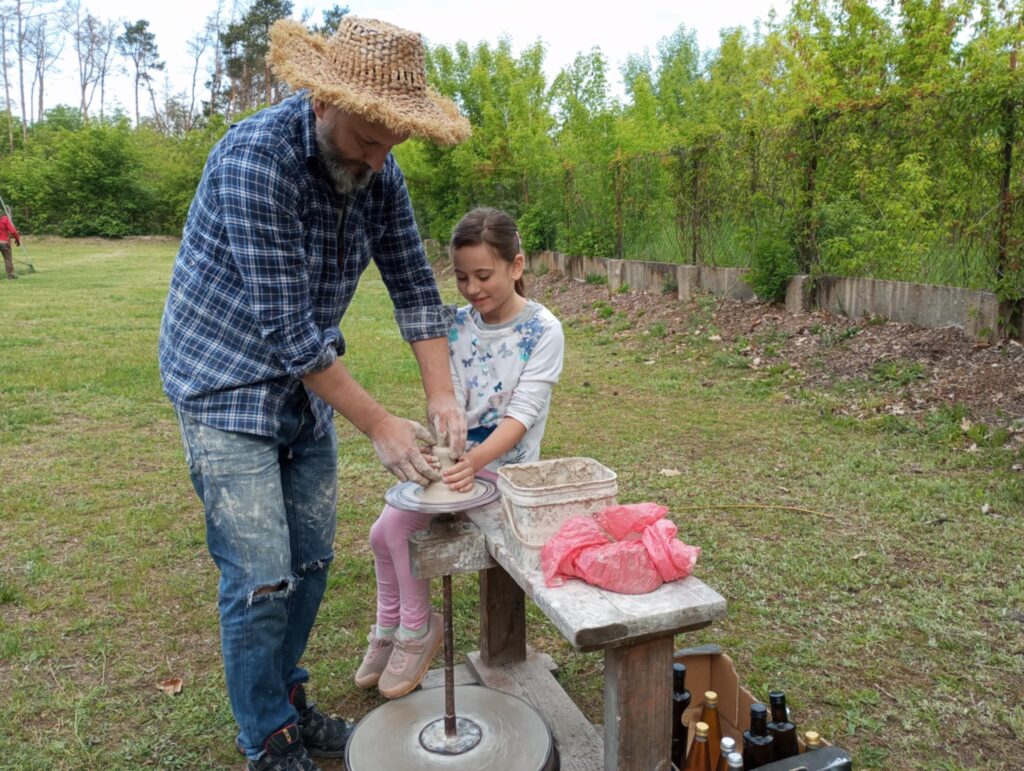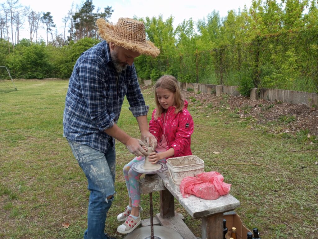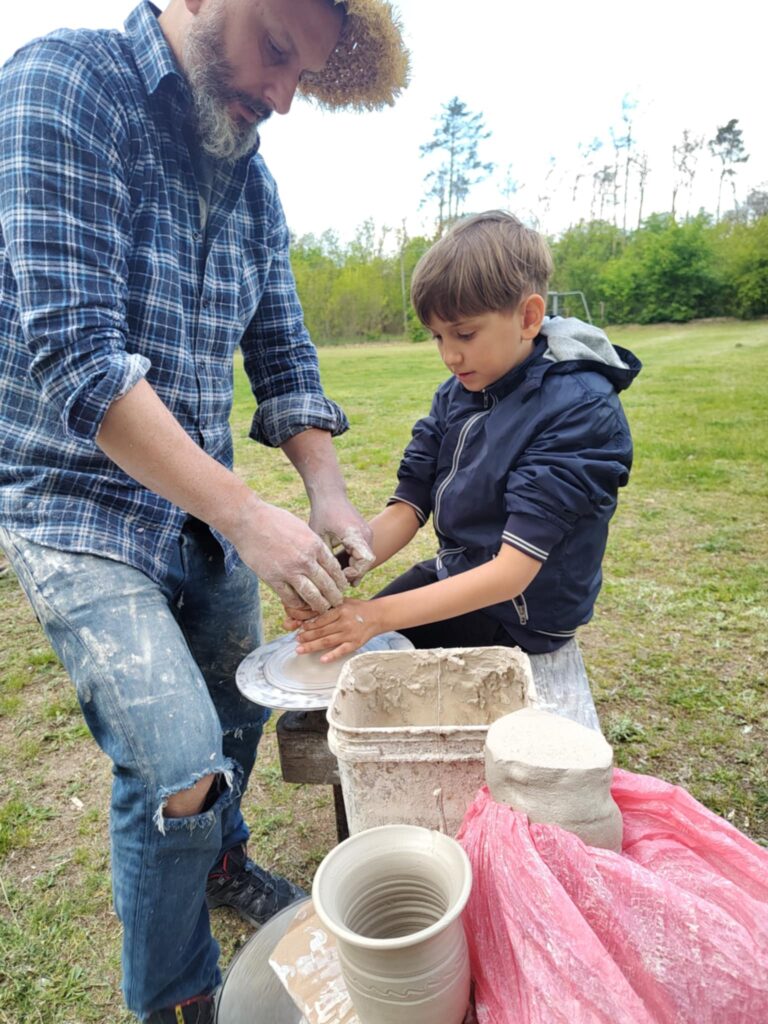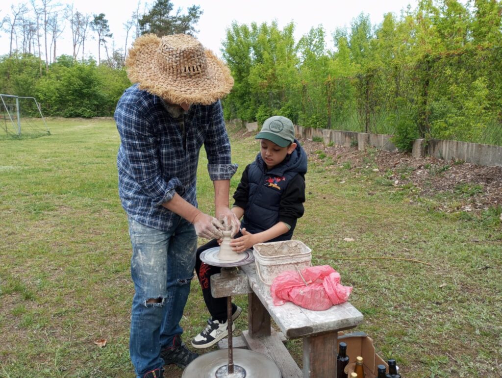 P. Sebastian wprowadził dzieci w niezwykły świat ceramiki, opowiedział o właściwościach gliny oraz omówił etapy powstawania gotowego produktu ceramicznego. Zaprezentował sposób wykonania dzbanków na kole garncarskim poruszanym za pomocą nóg. Pokaz był inspiracją dla dzieci do twórczej pracy, ponieważ każde dziecko mogło usiąść przy garncarskim kole i przy pomocy naszego gościa ulepić swój dzbanuszek. Uczniowie z zapałem podjęli się tego zadania i udowodnili, że nie ma dla nich rzeczy niemożliwych takich jak lepienie garnków. Własnoręcznie formowali i toczyli naczynia na kole garncarskim i z ogromnym zaciekawieniem obserwowali, jak z kawałka gliny powstaje wspaniałe dzieło. Twórcza praca przyniosła dzieciom wiele radości i satysfakcji.