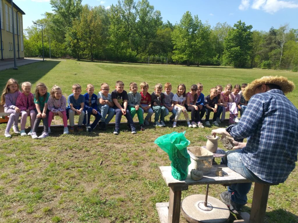21 maja br. w naszej szkole odbyły się warsztaty ceramiczne, które poprowadził pan Sebastian Kozłowski – garncarz z miejscowości Kamionka. Z przedstawicielem tego ginącego zawodu spotkali się uczniowie z klas I – III.