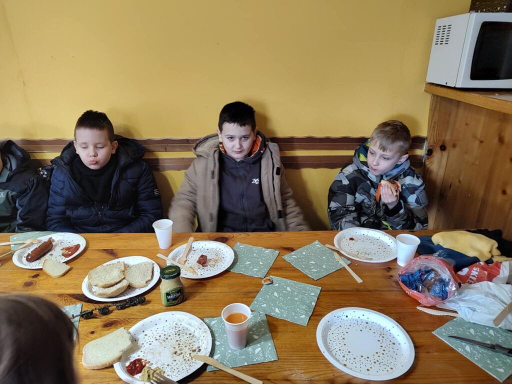 Pobyt w leśniczówce zakończył się ogniskiem i pieczeniem kiełbasek. Uczniowie klasy III z bagażem wiedzy o lesie i niezapomnianymi wrażeniami wrócili do placówki.